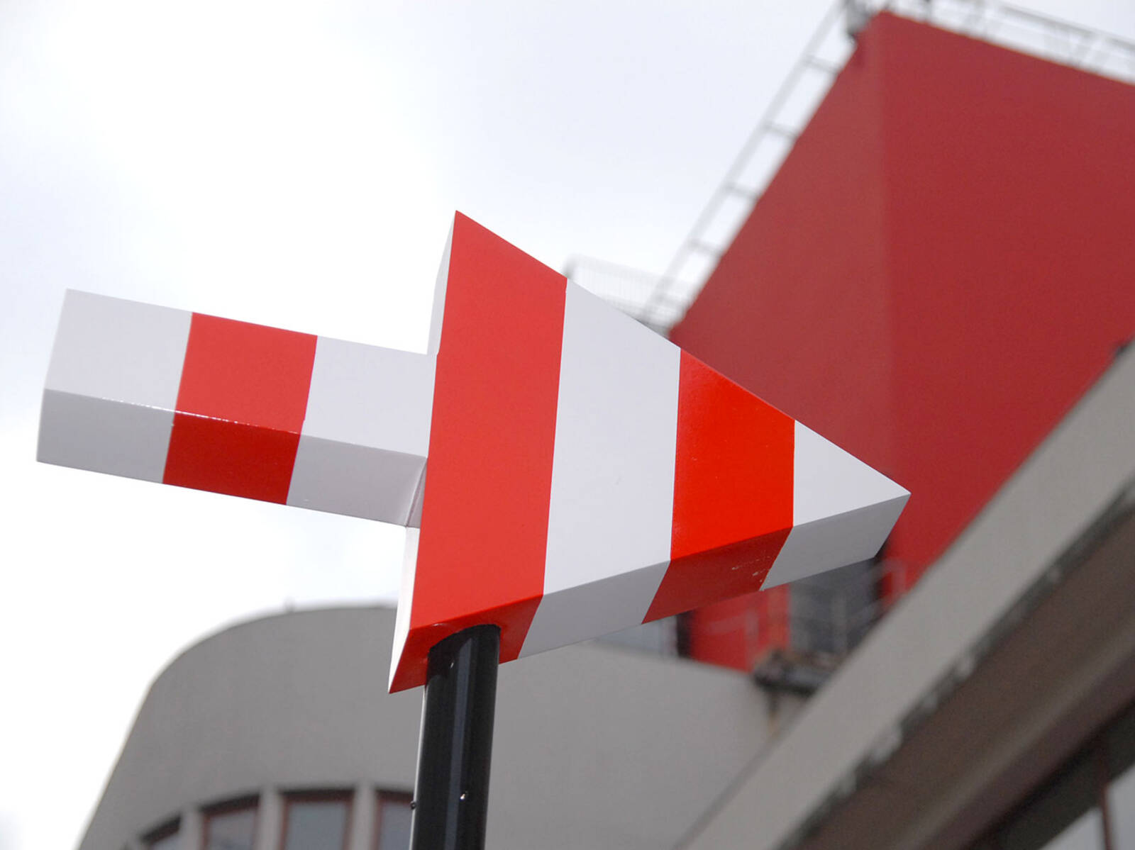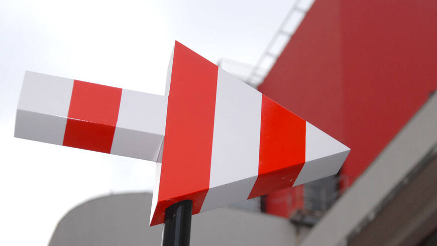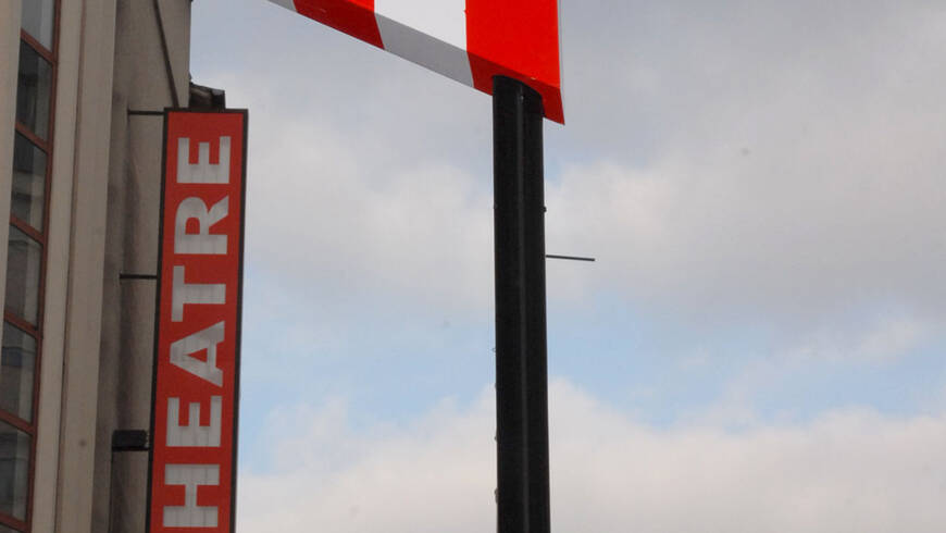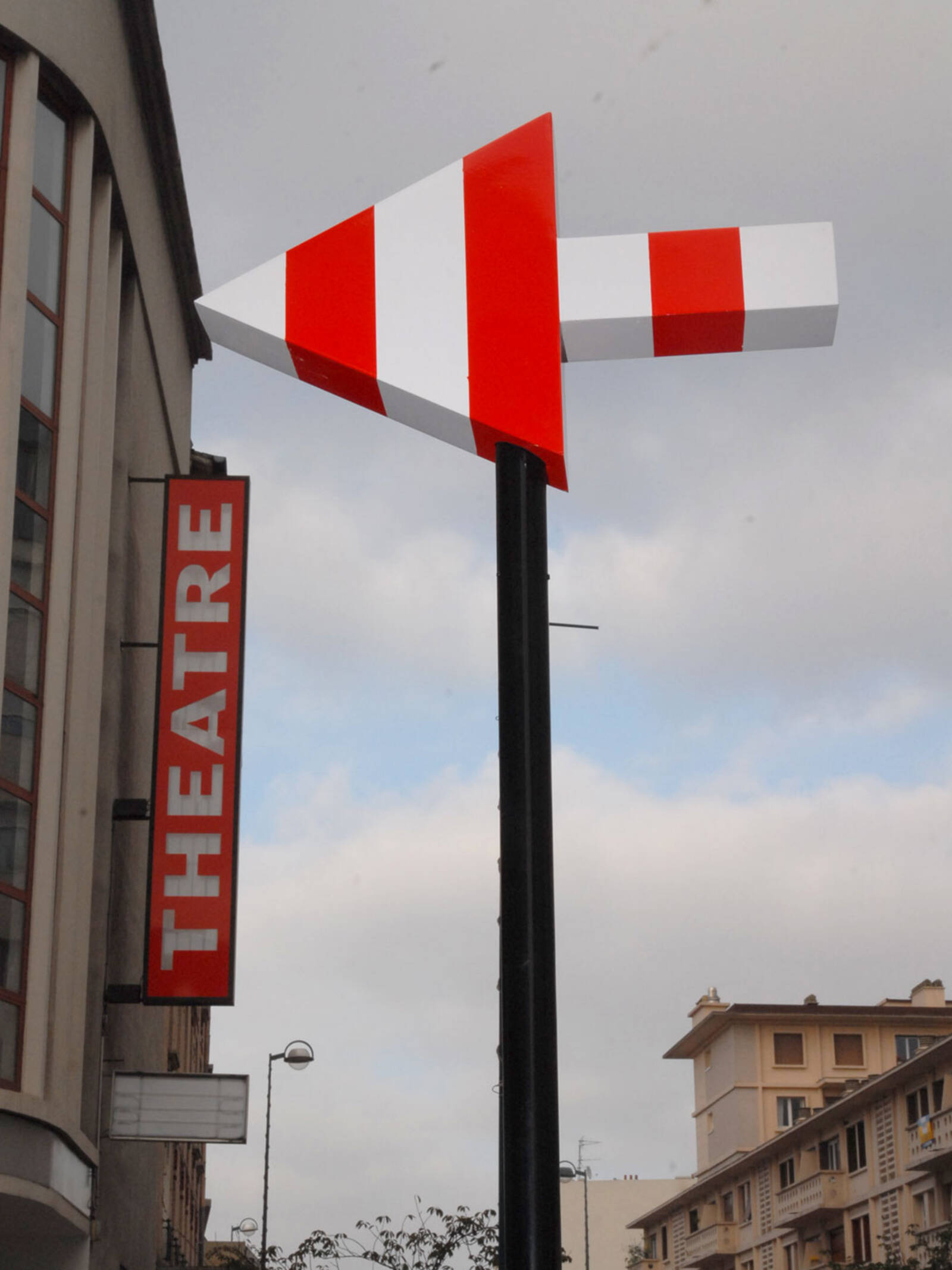 A la fois panneau signalétique et œuvre d’art, ces flèches ont été réalisées par l’artiste Daniel Buren. Et pointent toutes dans la même direction : le théâtre de Gennevilliers. L’idée date de 2007, lors de l’arrivée de Pascal Rambert en tant que directeur du T2G. Il souhaite doter l’établissement d’une nouvelle signalétique extérieure et confie la réalisation de cent flèches à l’artiste plasticien.