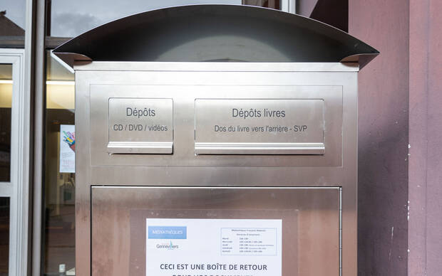 Vous pouvez rendre vos documents 24/24, 7/7 dans les boîtes de retour à votre disposition devant chaque médiathèque.