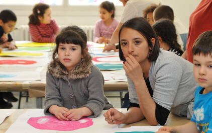 Sur le mode du jeu et de l’expérience, les enseignants favorisent le développement de la créativité, de l’imaginaire et de la curiosité des enfants en les invitant à expérimenter différentes formes d’expression plastique : dessin, peinture, collage, modelage, photographie, etc. Les visites des expositions de la galerie Édouard-Manet, les sorties et les projections de films contribuent à l’éveil culturel des enfants.