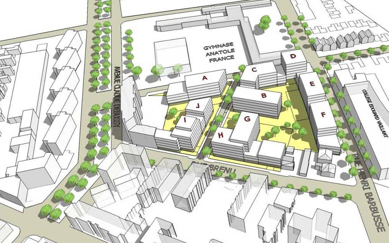 - Démolition de 166 logements (patrimoine France Habitation, devenu SEQENS)